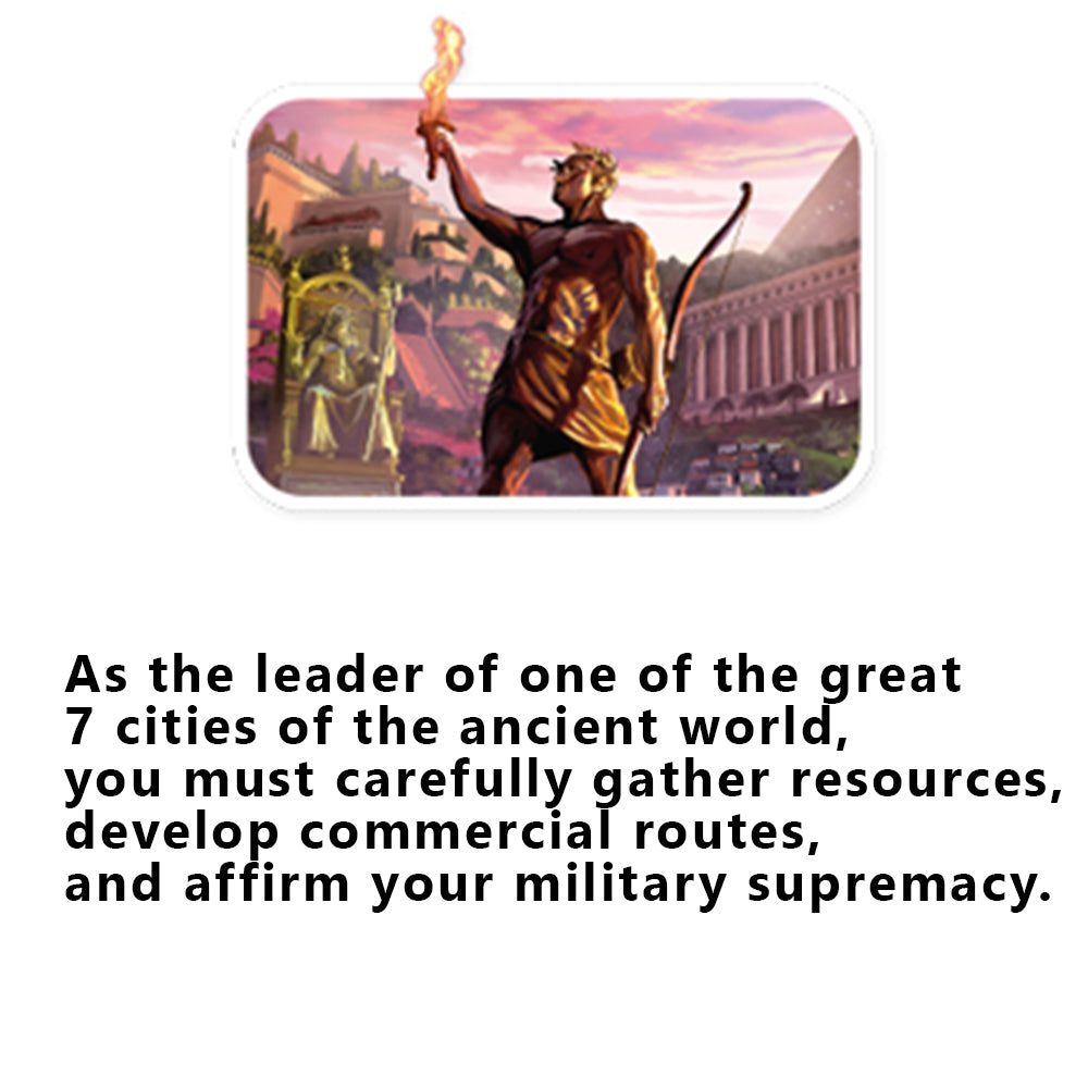 You are the leader of one of the 7 great cities of the Ancient World. Gather resources, develop commercial routes, and affirm your military supremacy. Build your city and erect an architectural wonder which will transcend future times.