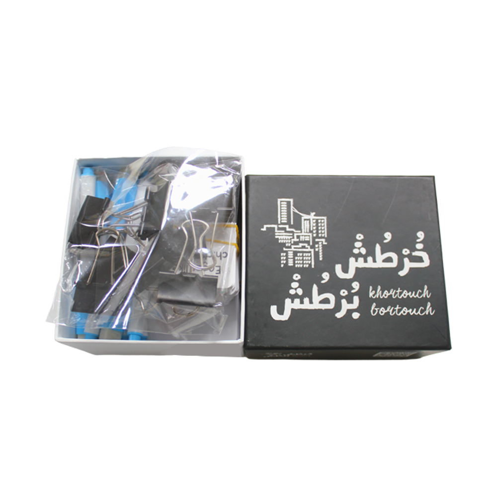 It includes: 8 whiteboard markers, 64 empty cards, 8 bulldog clips, 200 scenarios to draw, and instructions