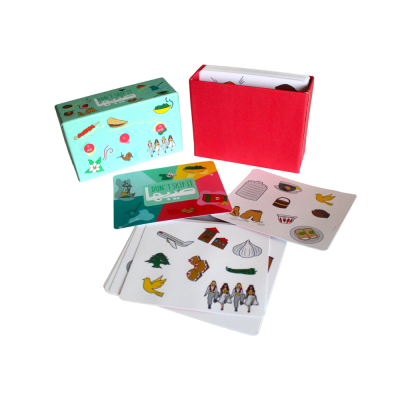 A clever matching game with 53 cards featuring 57 symbols in total with 8 symbols per card. Any two cards have one symbol in common that you have to find and name to win!