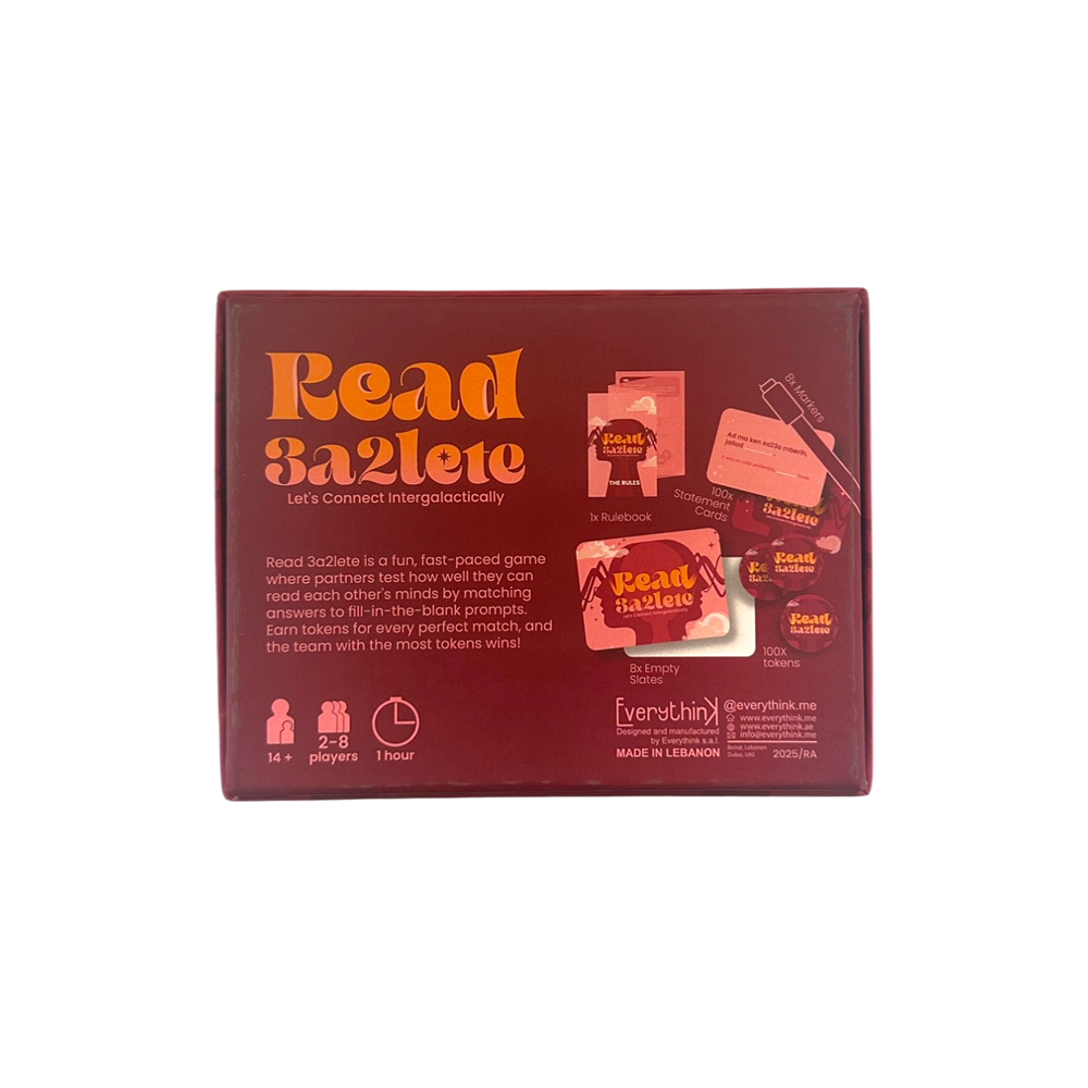 Read 3a2lete is a fun, fast-paced game where partners test how well they can read each other's minds by matching answers to fill the blank prompts.