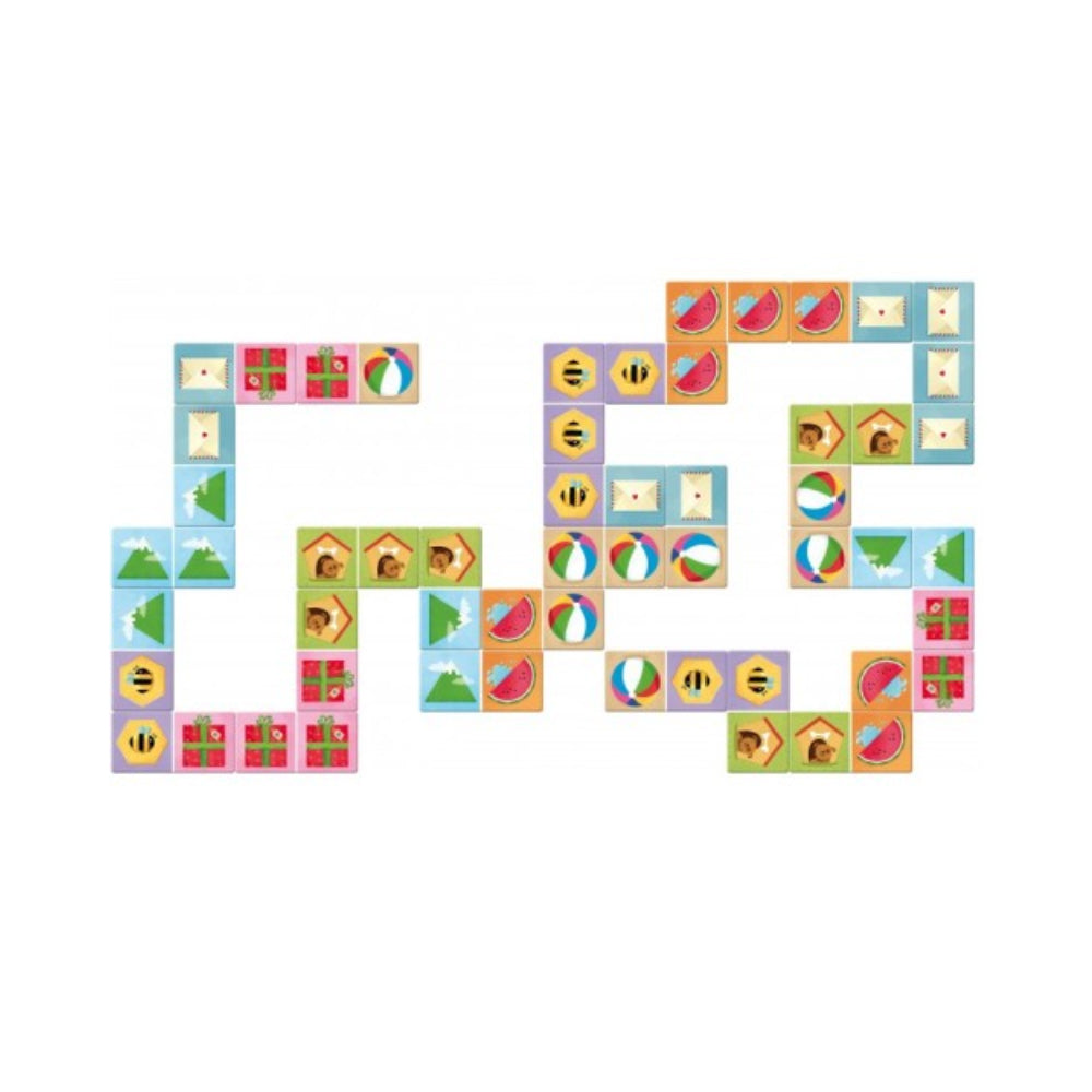 This set includes a 10 page book and 28 large dominoes printed on both sides to develop manual dexterity and concentration and help children learn.