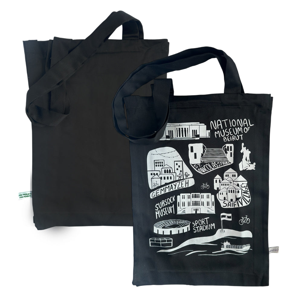 Whether you're exploring the ancient ruins of Baalbek, relaxing on the beaches of Batroun, or navigating the vibrant streets of Beirut, the Beirut in Black & White Tote is the perfect way to carry your memories and your essentials. Get yours today and embark on your next Lebanese adventure!