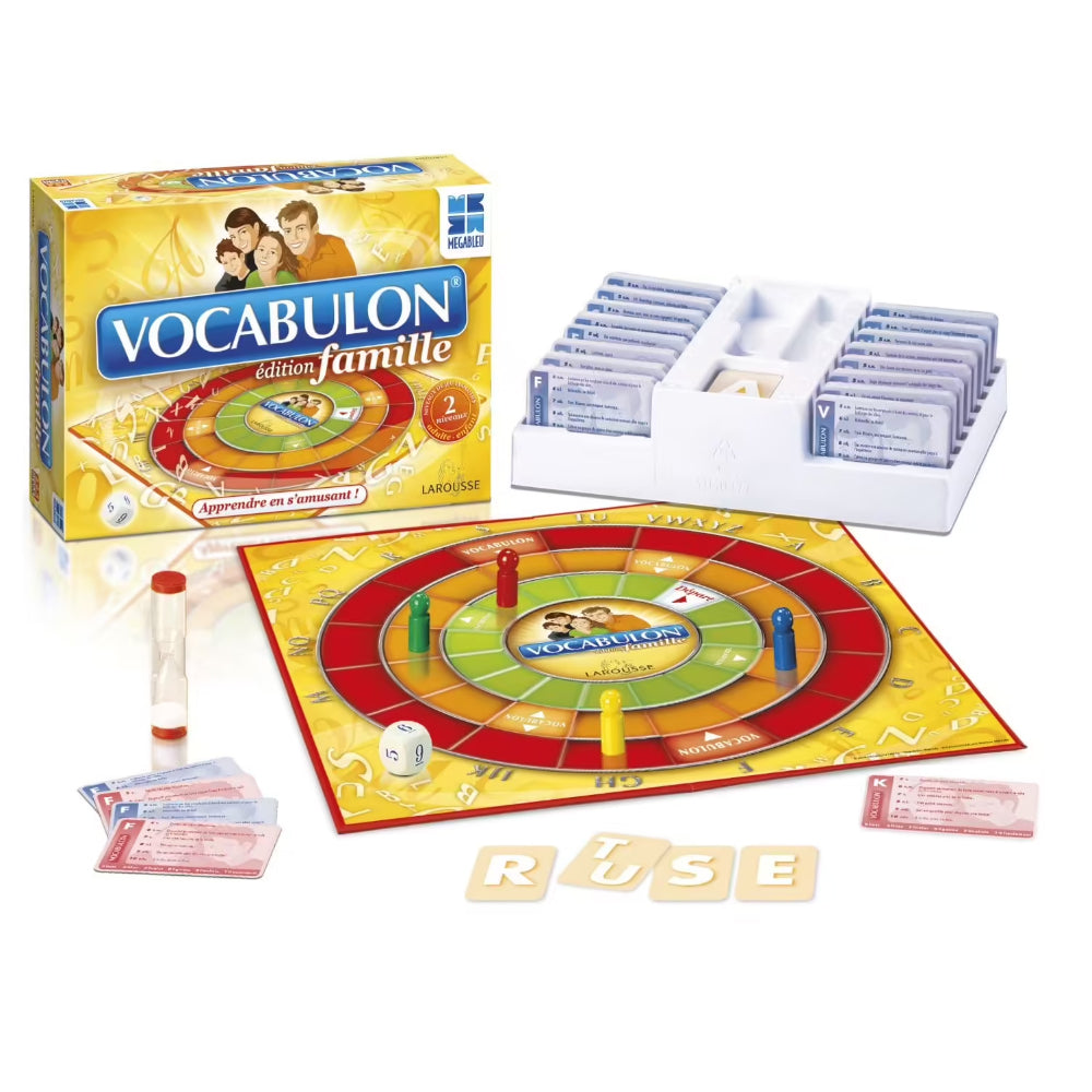 Word game... a clever game! Friendly and entertaining, Vocabulon brings the whole family together thanks to its simple rules and its cards designed to play at two levels, children and adults. To laugh, have fun and discover the hidden meaning of 5,280 common words taken from the Petit Larousse: 2,640 words for children and 2,640 words for adults. In 2, 3, 4 or in teams, set out to conquer your secret word and... may the best player win!